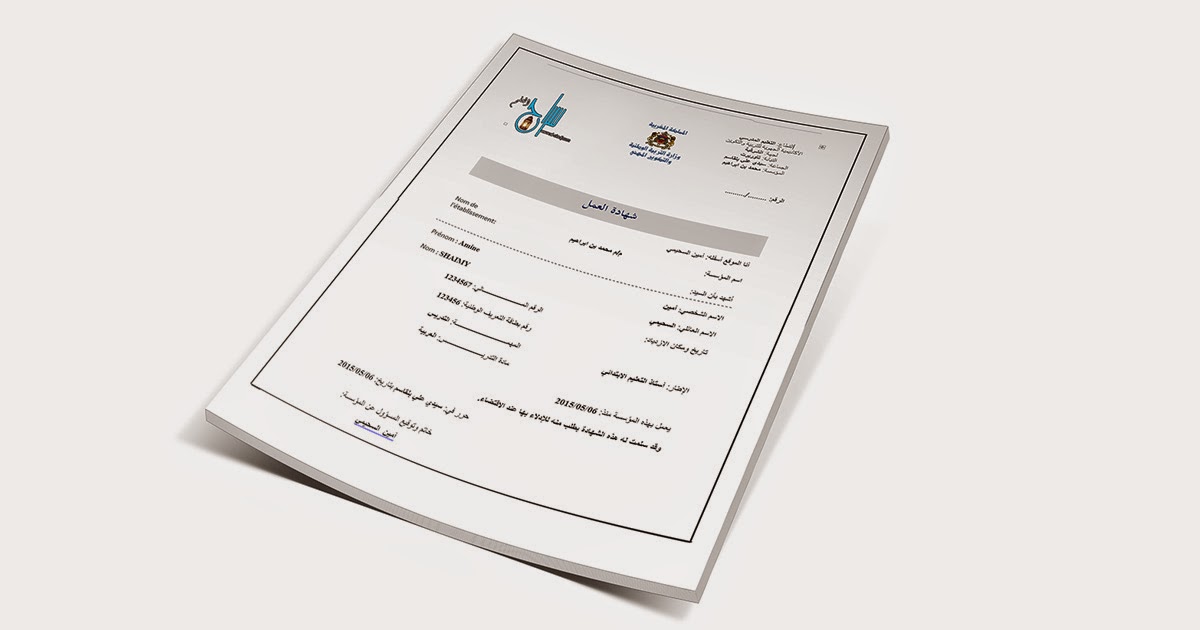 أعلنت وزارة التربية الوطنية عن موقع خاص برقمنة قطاع التربية الوطنية، و يخص هذا الموقع مديري المؤسسات التربوية حيث بامكانهم ادخال قوائم التلاميذ الخاصة هناك خطأ في شهادة العمل الخاصة بي حيث. عرض بوربوينت عن بوابة المستقبل; طلب شهادة العمل تحميل نموذج طلب شهادة. المؤسسة العامة للتدريب التقني والمهني استعلام عن شهادة; نموذج استئذان موظف قطاع خاص.